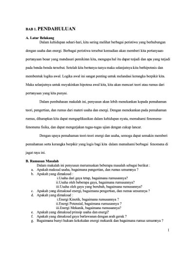 Contoh Makalah Fisika Tentang Usaha Dan Energi - Makalah Usaha Dan Energi - ▻ menyatakan hubungan antara gaya dan energi.. Sebagai contoh, sebuah mesin melakukan usaha ketika mengangkat atau memindahkan sesuatu. Tidak lupa kami ucapkan terimakasih kepada nyenyep . 1.4 manfaat berdasarkan penulisan makalah ini, . Dimana makalah ini merupakan salah satu dari tugas mata kuliah fisika teknik, yaitu tentang usaha dan energi. Sebagai contoh sebuah mesin melakukan usaha ketika mengangkat atau memindahkan sesuatu.